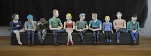 mensfiguren op ijzeren balk